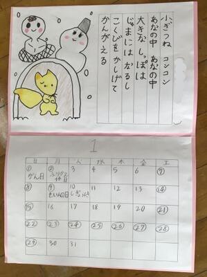 1,2年生は、書き方で、1月のカレンダーを作りました。