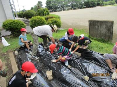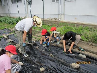 1,2年生が生活科の学習活動として、サツマイモの苗植えを行いました。