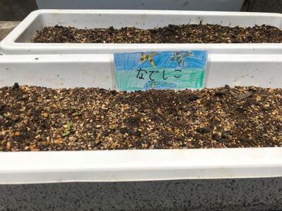 1,2年児童が、自分たちでプランターに表示したのですが、早業すぎて、シャッターチャンスが間に合いませんでした。