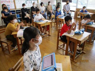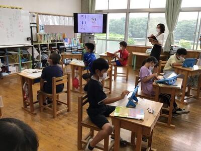 3,4年生の授業と同時刻に、5,6年生も、研究授業を行いました。