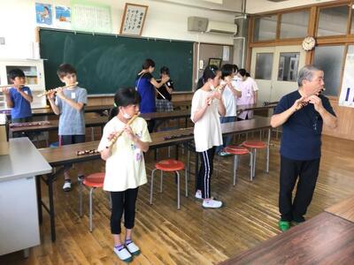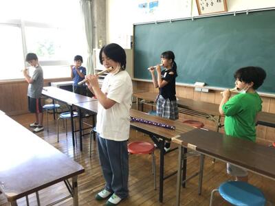 リコーダーの音色が校舎内に響き、ついつい音楽室をのぞくと、5,6年生が、演奏を発表し合っていました。
