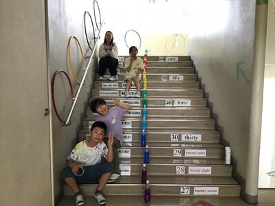 中央階段と体育館入口に、一昨日から素敵な装いが・・5,6年生が図工の学習で飾ってくれました。階段のグループは「どこかにつながる階段を入口に見立てて夢の世界へ」・・・体育館グループは「虹をテーマに華やかな向こうの素敵な世界へ」・・