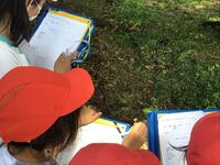 6月29日(木)第3回 池ノ森学が行われました。本日は、各班ごとに校外に出て自然観察学習に出かけました。学校近くにある日吉神社、山王溜方面です。今回も、講師の方から説明をいただきながら観察や採集、記録をしていきました。