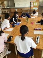 学校へ戻ってから、食堂に集まり、6年生を中心にみんなで協力して安全マップ作りを行いました。