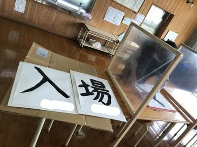 運動会の入場門が出来上がりました。5,6年生が「入・場・門」と筆で書き上げた作品を掲げたものです。実行委員さんが、みんなに披露すると、自然と拍手がわきました。当日が楽しみです。
