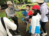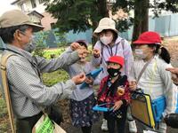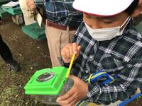講師の橋田さんと、日吉神社方面に出かけて、草花やドングリなどの木の実をじっくり観察しました。枯葉の山から大きなカブトムシの幼虫が出てきて、驚かされました。