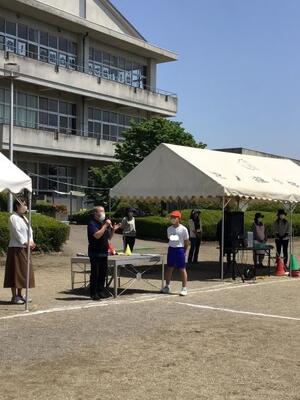 保護者の方々も早朝準備に来ていただき、校庭が着々と整いました。