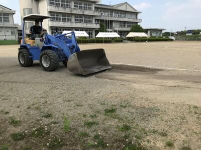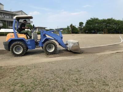 重機を使い、校庭の砂を均等にならしたり、やわらかい場所を固めてくれたりと、ていねいに整備してくれました。