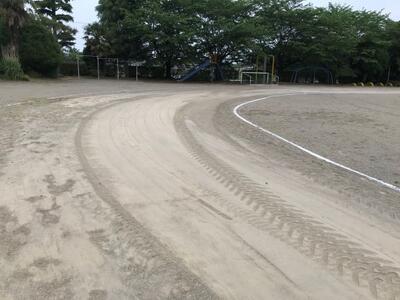 「子どもたちが少しでも走りやすくなるように」との思いから、トラックを何周もブラッシングしてくださいました。有難いことです。