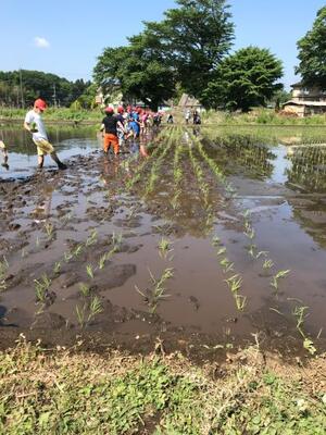 子どもたちが丁寧にがんばって植えた苗です。おいしいお米が実りますように。