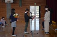 転出者からは、それぞれ、楽しかった思い出や感謝の気持ち、そして励ましのお言葉をいただきました。子どもたちは、うなずきながら静かに聞いていました。涙が止まらない児童もいました。