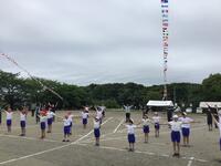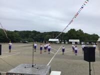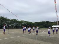 本校の運動会種目は全校生で参加します。子どもたちは一つの種目の後、休む間もなく次の競技を行います。そのため、一つの競技が終わった後、少し間をおき、水分補給も行いながら進めていきました。忙しい運動会でしたが子ども達は、赤組、白組一致団結協力し合って、一人一人が力いっぱい演技したり競技したりして頑張りました。