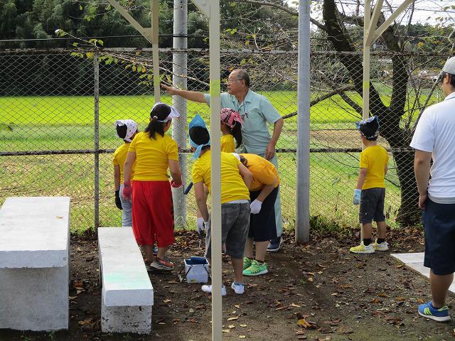 本日、学区内に会社がある関西ペイントさんの御協力のもと藤棚と藤棚に設置したベンチとテーブルのペンキ塗りを行いました。子どもたちはおそろいの黄色のTシャツを着て一生懸命にペンキを塗っていました。10月5日(土)の池小まつりの際にはここでオープニングセレモニーを行い、昼食を食べる予定です。今からとても楽しみです。