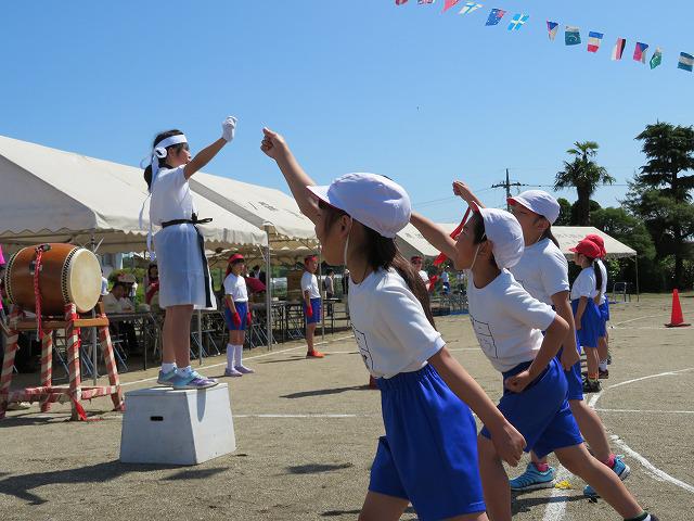 早朝まで雨が降り、実施できるか不安な天気でしたが、開始時間が近づくにつれ天候も驚くように回復しました。毎日練習をがんばってきた子ども達の思いが雨雲を晴らしたのかもしれません。