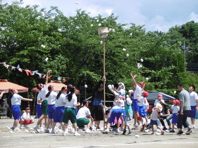 子どもたちが考えた応援合戦では大いに盛り上がり、プログラムは順調に進みました。今年リニューアルした親子種目「おやこ宅急便」では、保護者と子どもが協力して一輪車で荷物を運びました。中には息が合わず荷物を落としてしまう親子もいて、会場の笑いを誘いました。