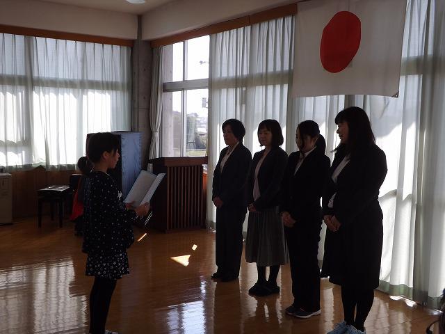 新任式 始業式 投稿日時 : 2018/04/09 教員 新任式を行いました。今年度は新しく4名の先生方を池ノ森小学校にお迎えしました。6年生の代表児童からの歓迎の言葉の後、全員で「Believe」を歌いました。 また、引き続き、第1学期始業式を行いました。校長先生から各クラスへの励ましの言葉と今年度もあいさつを元気にしてほしいというお話、そして担任発表がありました。 平成30年度が児童18名、教職員12名で元気にスタートしました。新任式・始業式の様子