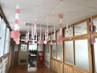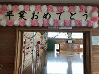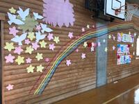 3月になってから少しずつ、卒業をお祝いする装飾が校舎内で見られるようになりました。そして今日は、会場となる体育館や卒業生の教室にも装飾がされ、校舎内のいたるところがお祝いモードになりました。