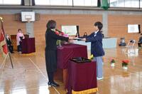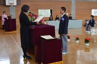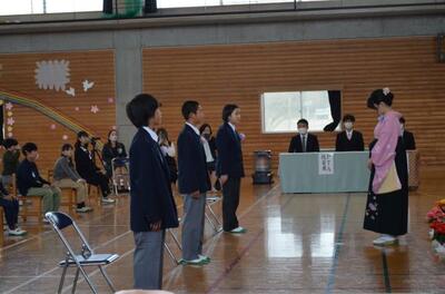 会場の中央まで、担任と3名の卒業生が入場しました。
