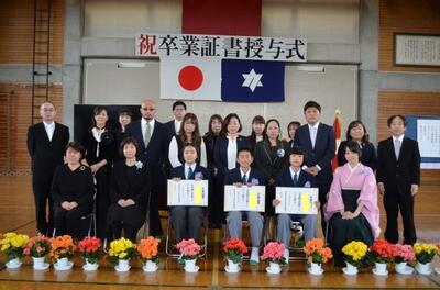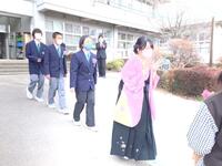 在校生が花のアーチを並べて、卒業生を見送りました。