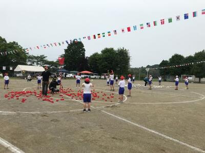 保護者の方々も早朝準備に来ていただき、校庭が着々と整いました。