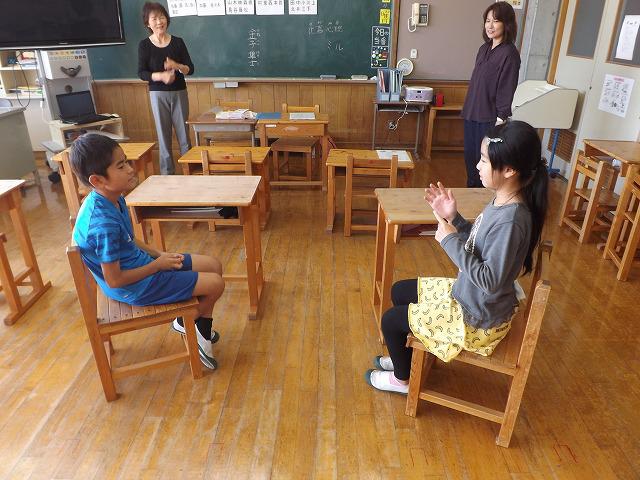点字・手話教室 投稿日時 : 2018/10/22 教員 4年生が、18日に点字教室、22日に手話教室を行いました。 点字教室では、専用の道具を使って自分の名前を打ったしおりを作りました。 手話教室では、自分の名前を手話や指文字で表現しました。 普段の学習では学べない貴重な体験をすることができました。