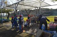 できあがった焼き芋は、アツアツで甘かったです。3年以上の児童や職員の分も用意してくれて、おすそ分けしてもらいました。焼きリンゴのおまけ付きでした。1、2年生、ごちそうさまでした。