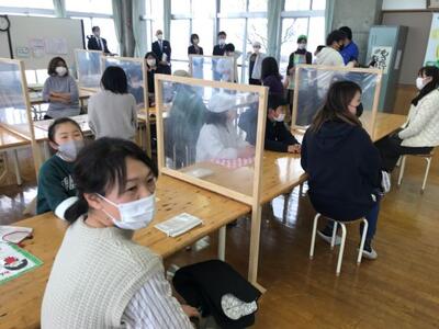 さて、4時間目になると、保護者の方々が来校してきました。今日は親子給食です。