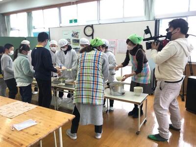 とちぎテレビの方が取材にいらっしゃって給食の様子を撮影しました。