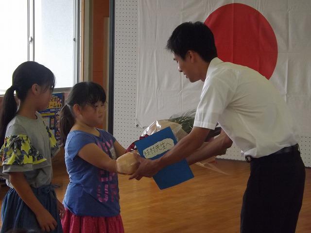 続いて、3・4年生担任の枝村先生の離任式を行いました。