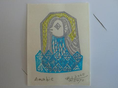 川上澄生美術館から「アマビエ」の版画をいただきました。第6回鹿沼市立川上澄生美術館木版画大賞で大賞受賞の竹崎勝代氏の寄贈によるものです。
