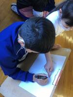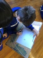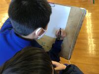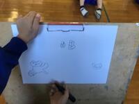 最初に、各グループの中から、絵描き係を1名ずつ選びました。