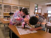 二つ目は木はん画です。ぼくは始める前、指を切ったらどうしようと、とても心配でした。ためしぼりをしたとき、両方の手でちょうこく刀を使えばだいじょうぶと分かりました。それで、楽しくほることができました。
