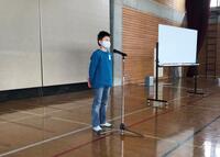 二学期のふり返りを、1年と3年の代表児童が発表しました。
