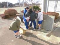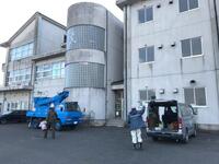 鉛筆校舎外装の破損部分の修繕のため、市教育委員会施設係から作業員の方が来校されました。