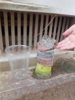 ゴミ袋に水を入れて、段ボール箱に入れました。