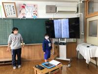 自分のタブレット画面をテレビに映して、意見を発表しました。