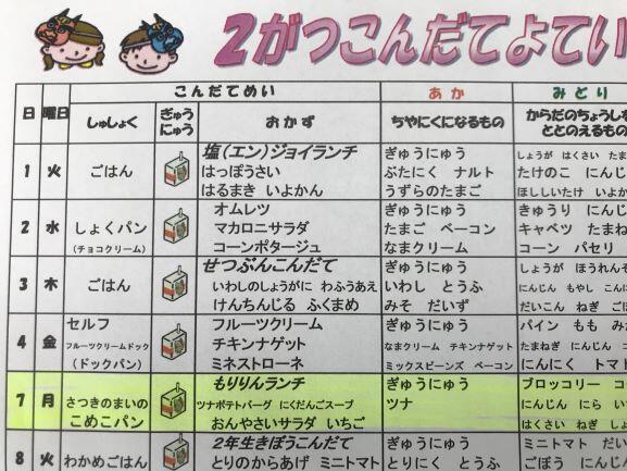 本日の献立「もりりんランチ」