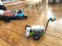 タブレットでプログラムを組み立てると、そのとおりに車が動きます。