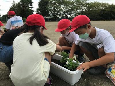 グループごとに1つのプランターを仕上げていきました。