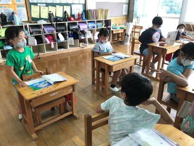 5,6年生は、リモートで英語の授業を実施しました。