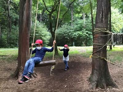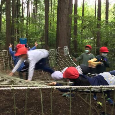夕食前、すきま時間に、アスレチックで遊びました。