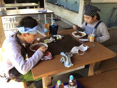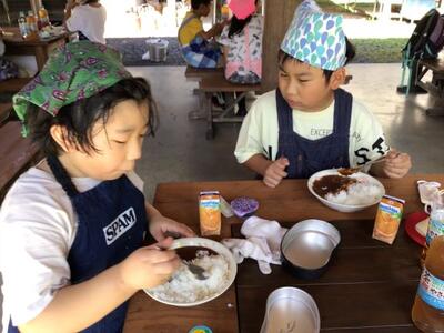 自分たちでたいたご飯が出来上がりました。