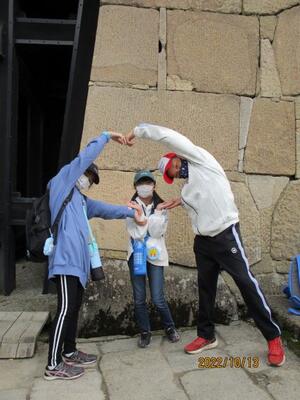 運悪く、この日は場内の見学ができませんでしたが、城周辺の見学だけでも十分楽しんだようでした。
