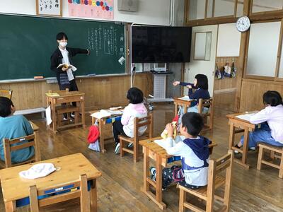 子供たちは、お話を聞いて自分なりの感想をもったりお気に入りの場面を選んだりしました。その後、感想や疑問をもったところを友達と共有し、お話のおもしろさを感じ取ることができました。手を挙げてたくさん発表する子もいて、よい意見がたくさん出るなど、楽しい授業が展開されました。