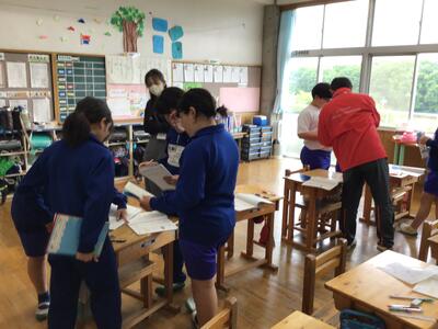 5校時 雨が降っているため体育館で「アイデア走」の練習を行いました。担当児童が説明し、スムーズに競技ができるように互いに調整し合って進めます。大きな声でわかりやすく実行委員の担当の5年生が説明し進めてくれたおかげで競技内容が理解できたようです。実行委員さんありがとう。少しずつ完成に近づいていますね。