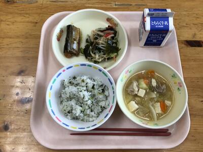 献立:なめし、とんじる、サンマのうめに、きりぼしだいこんのサラダ、牛乳、