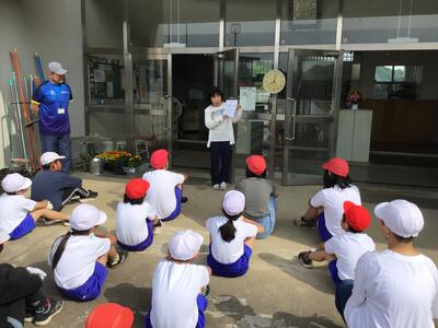 入場の行進と腕の動きと振りについてみんなに説明がありました。