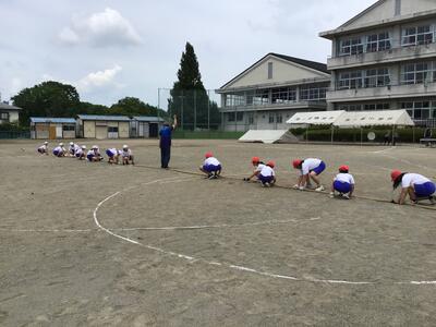 校庭を使って、リレーをしています。バトンパスも上手になってきました。運動会のおかげですね。