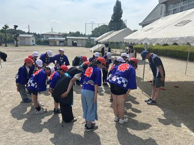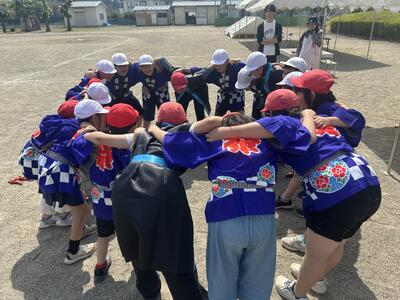 練習後に円陣を組み、当日に向けて「気合い」と思いの共有をしました。池小ならでは 微笑ましい光景です。