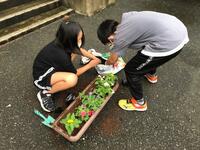 昨日、県立南高校で育てられた花の苗が、本校に届いたので、今日は、その苗をプランターに植え替えました。